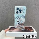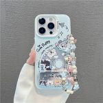 Cute Puppy Cartoon iPhone Case with Kickstand & Beaded Charm – Blue Edition